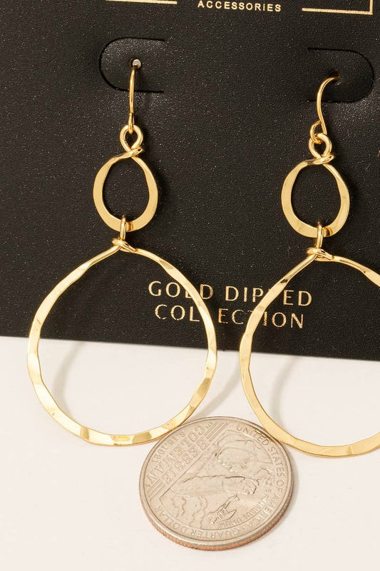 Gold Dipped Hammered Double Hoop Dangle Earrings