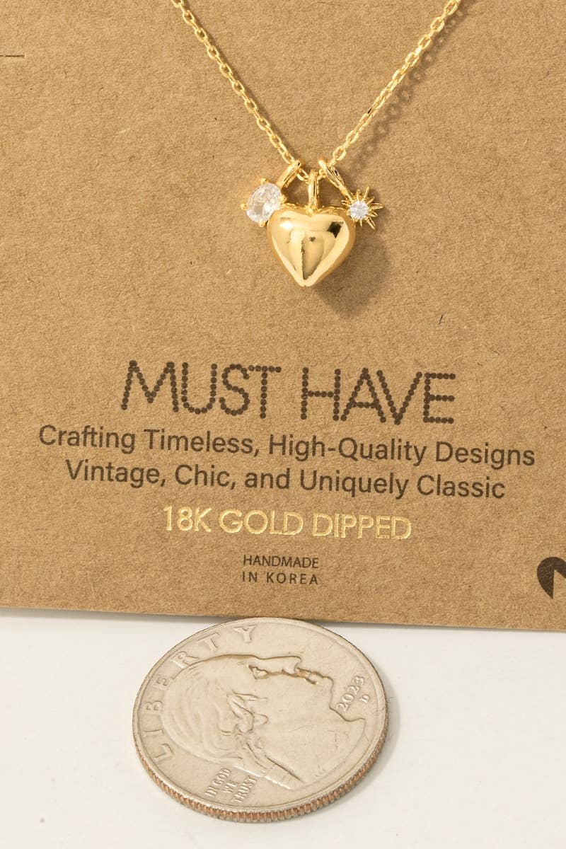 This trending necklace introduces a stunning gold dipped heart and cubic zirconia charms chain necklace style. Witness the perfect fusion of style and functionality as this trending necklace effortlessly complements your lifestyle.