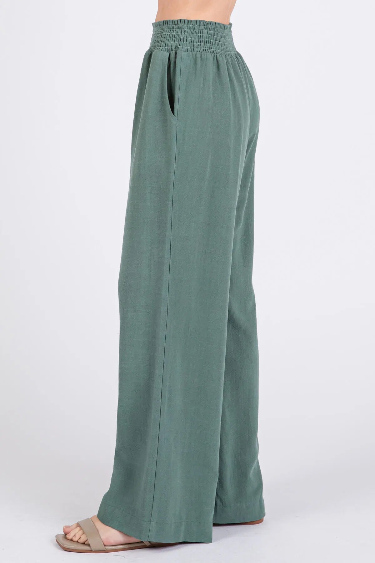 These pants feature a smocked waistband and are crafted from a refined linen blend for ultra comfort.