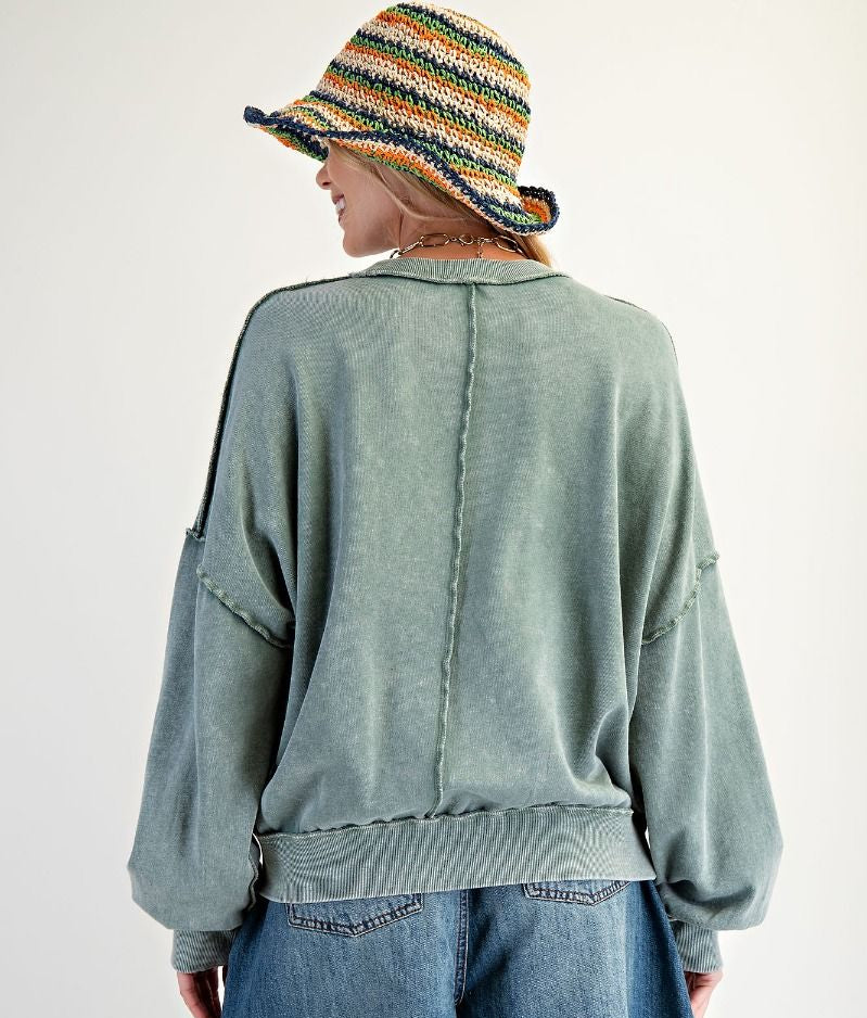 Slip into effortless style with this mineral-washed pullover that's all about that relaxed vibe. Featuring a boxy silhouette with dropped shoulders, a cozy crew neck, and front pockets for your essentials, it's designed for comfort without compromise. Look closer and you'll spot the cool exposed seam details that add visual interest, plus ribbed cuffs and hem to keep everything in place. Long sleeves and a loose fit make it your new go-to for laid-back days.