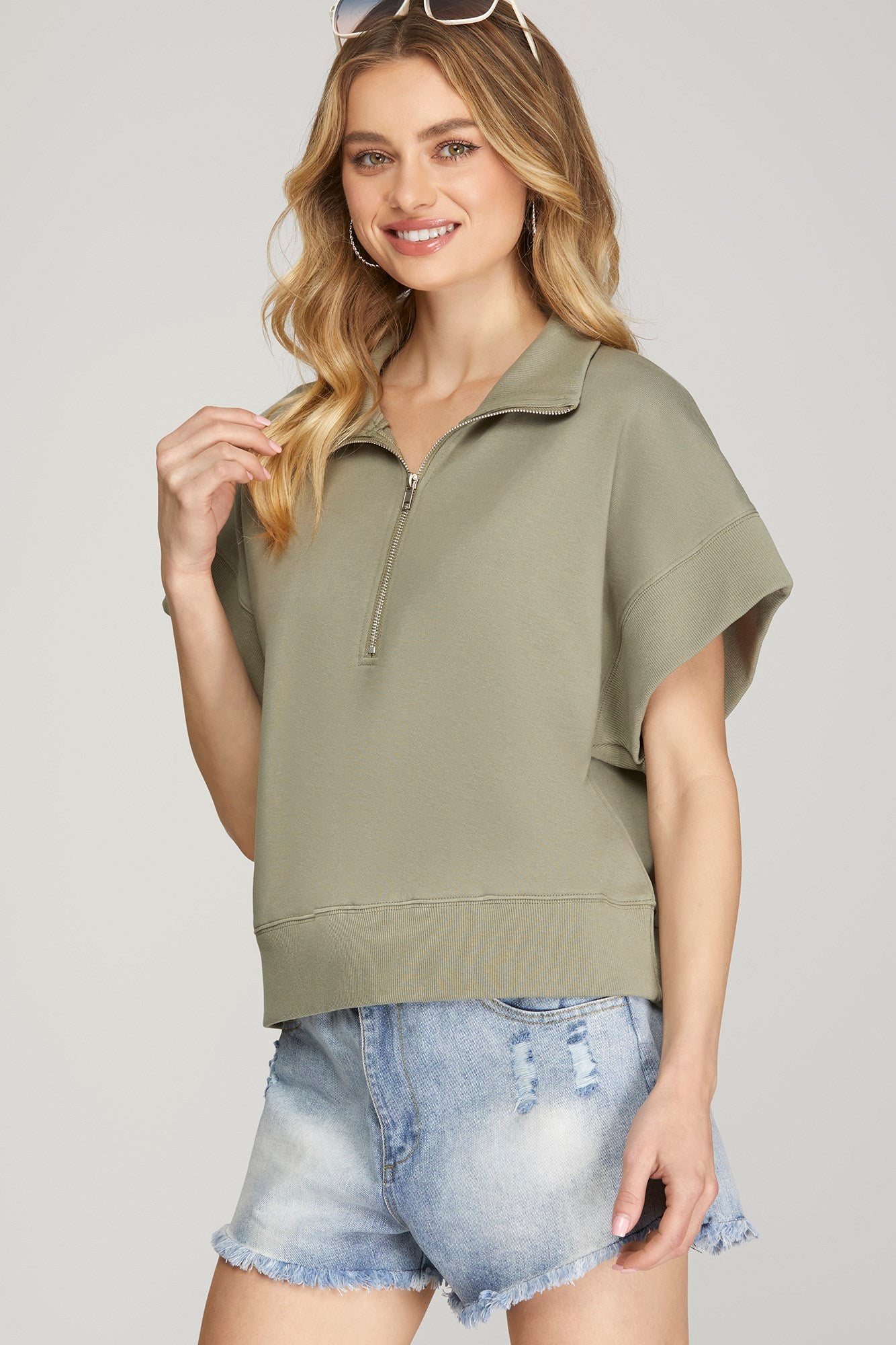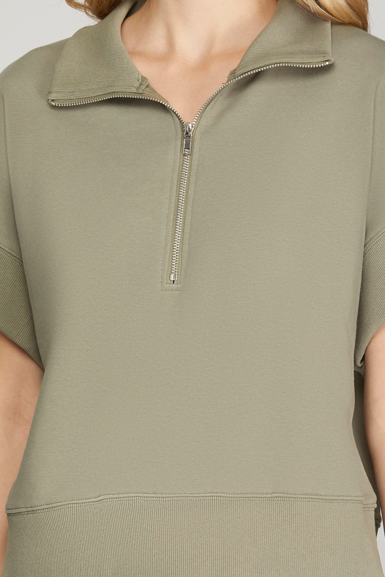 Experience ultimate comfort and style with this half-sleeve sweatshirt featuring a half-zip mock neck, perfect for a modern, versatile look.